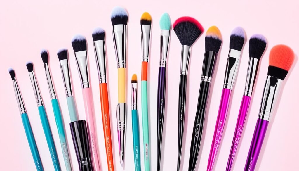 Además, muchos expertos sugieren comprar sets de brochas. Estos cubren todo lo que necesitas, desde la base hasta el delineado. Estos kits tienen buena calidad y precio. Mejoran mucho la experiencia de maquillarse.